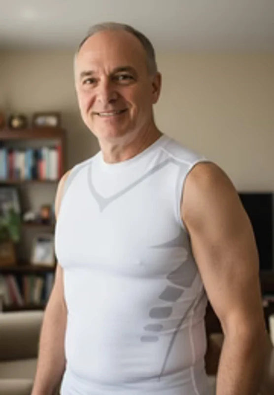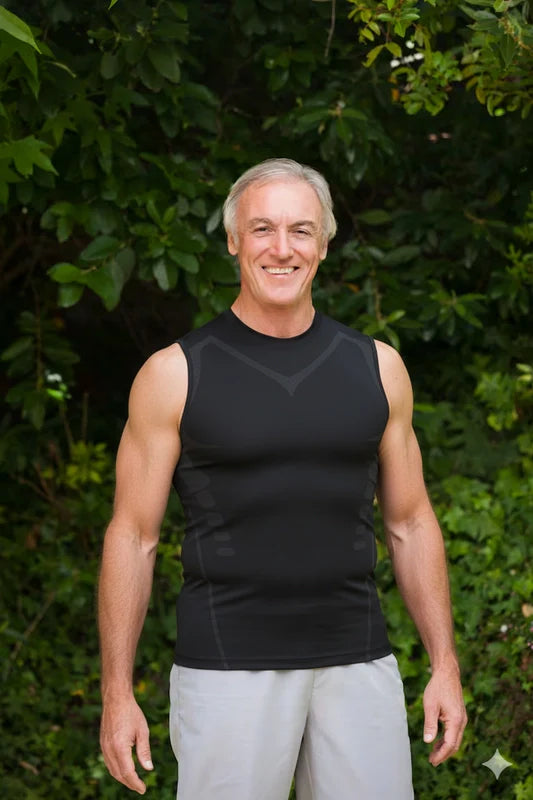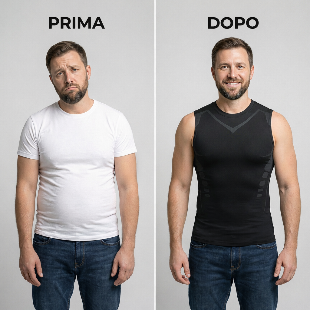Allora ho voluto una soluzione semplice, immediata e facile da portare: un canottiere compressivo progettato per snellire visivamente la silhouette, migliorare il sostegno e ridare fiducia appena lo indossi.
